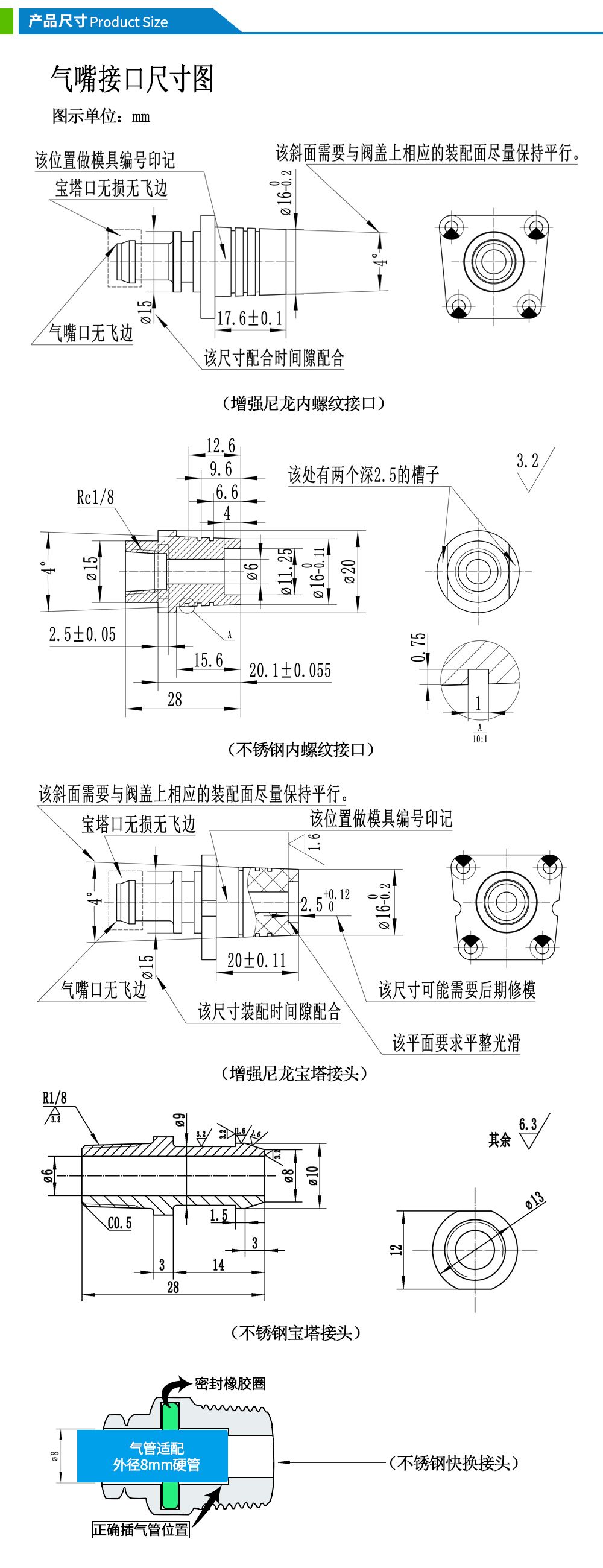 相应产品的标准接头为宝塔接头,如需定制,可单独定制内螺纹接口,也可内螺纹接口分别与宝塔接头或快换接头搭配定制。
