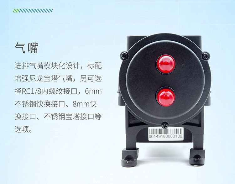 C50系列微型气泵是一种体积紧凑,集成转速流量控制功能的真空气泵,连接它的抽气口可以实现抽气或抽真空的功能。