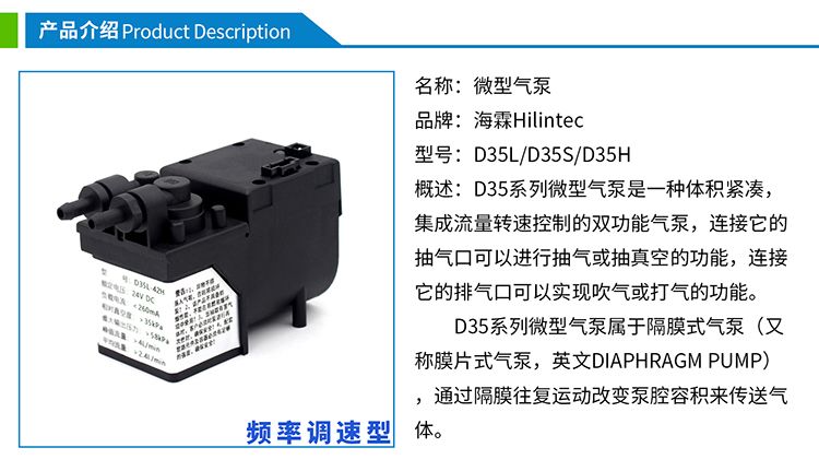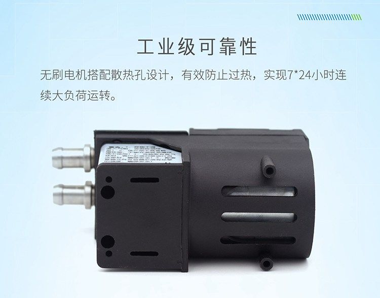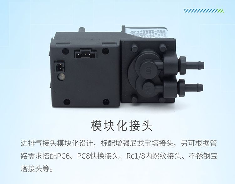 D35系列微型气泵是一种体积紧凑,集成转速流量控制功能的真空气泵,连接它的抽气口可以实现抽气或抽真空的功能,连接它的排气口可实现吹气或打气功能。