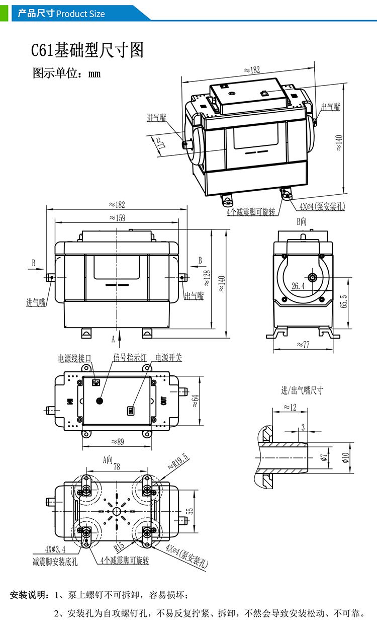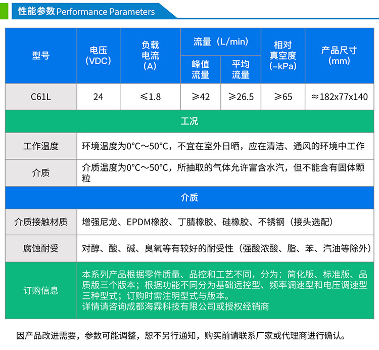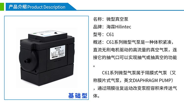 点击下载 C61系列基础远控型 微型真空泵 大流量高真空 隔膜泵 真空气泵 产品数据手册